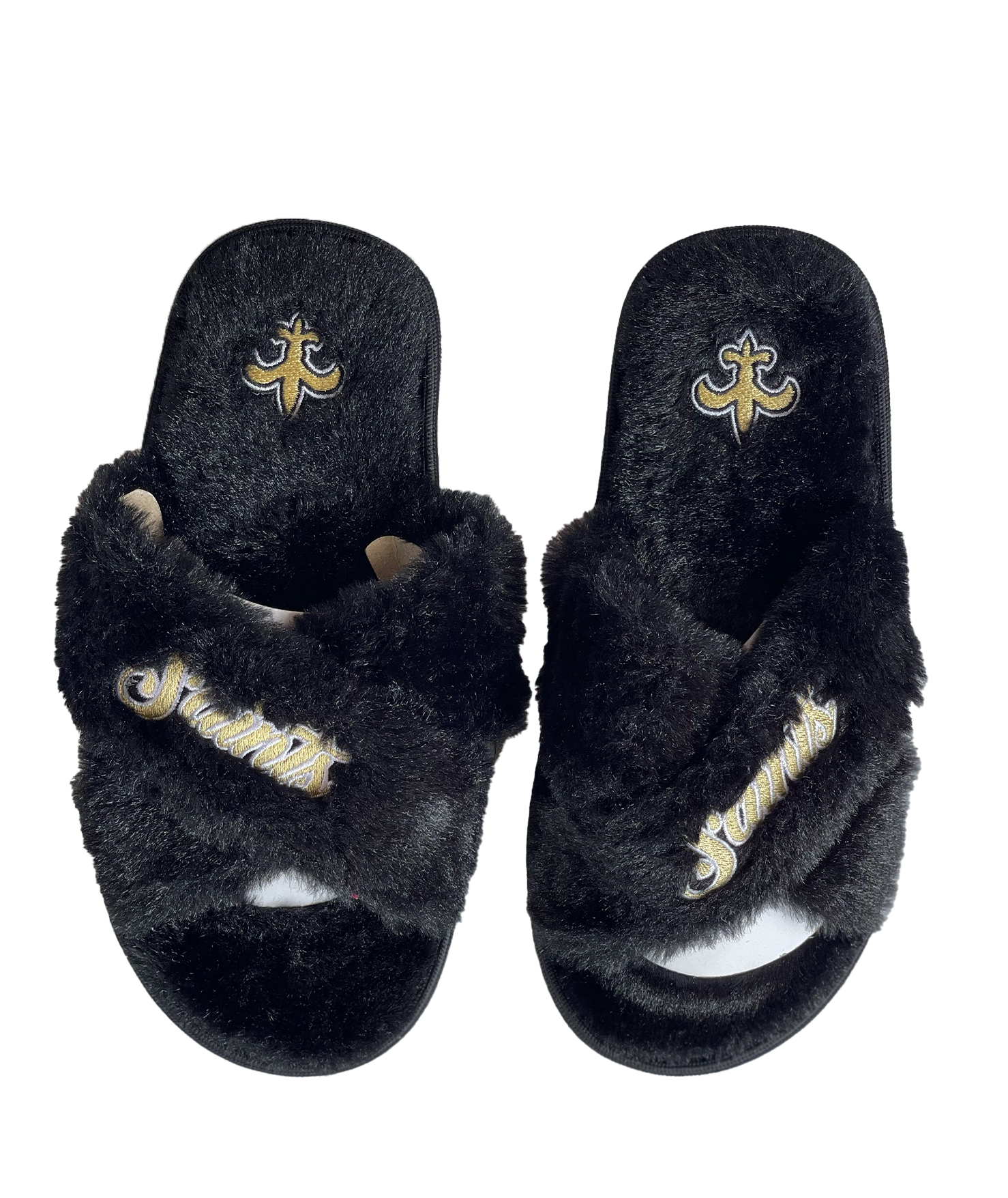 Stay comfortable while showing off your team spirit with these New Orleans Saints Slippers for women. The cross strap design makes them easy to slip on and off, perfect for lounging at home or quickly running outside. Show your support in style with these official team slippers.